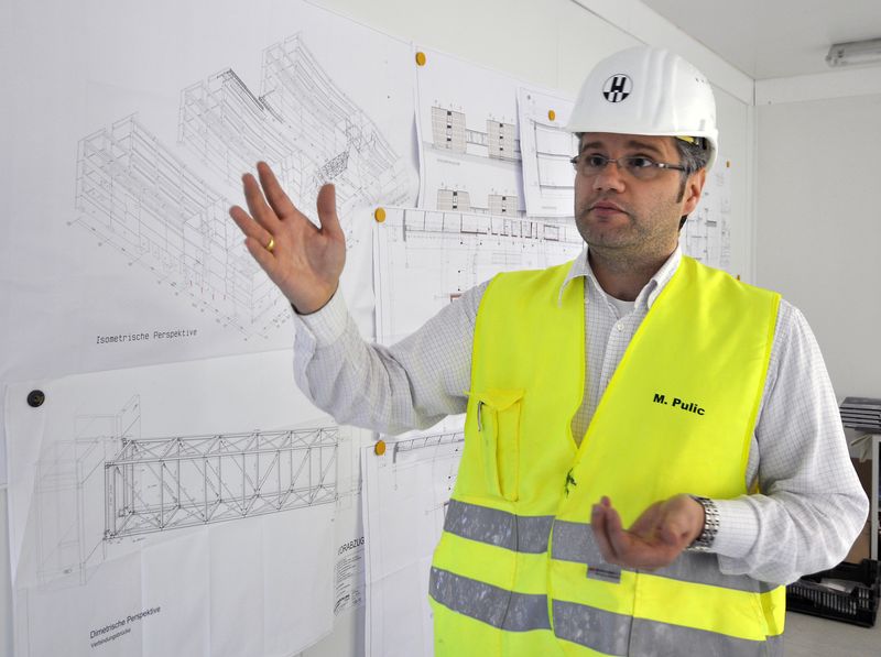 „Durch die drei relativ gleichen Verwaltungsgebäude erwies sich das elementierte Bauen mit vorgefertigten Betonfertigteilen im Endeffekt als geradezu ideal. So können wir nicht nur Zeit, sondern auch Kosten einsparen.“